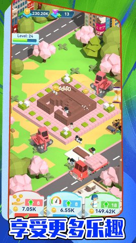 3、玩家可以修建更多的房屋,为更多的人提供居住的地方,同时还可以开设学校、办公楼等设施来赚取更多金币。