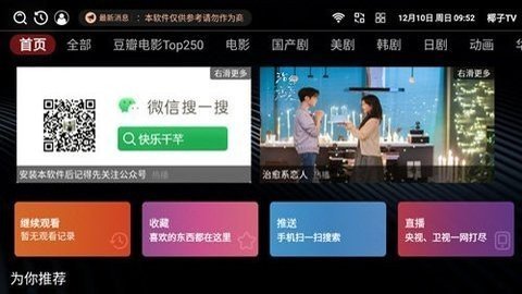 3、椰子影视tv版是一款功能丰富的影视娱乐软件,虽然无法在应用商店上架,但仍然能够提供最新最全的影视资源。