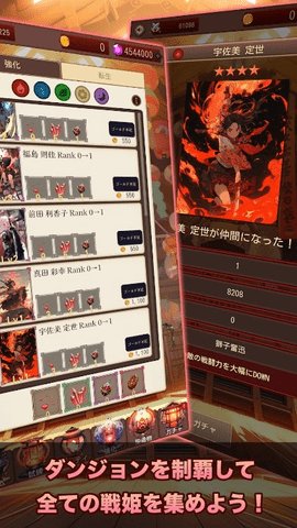 2、通过免费扭蛋获得武士公主,玩家可以挑战地下城,集结战国武士公主,共同对抗黑暗天国的威胁。
