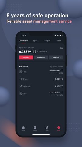 2、中币交易所网站的安保达到银行级别,使用SSL安全链接、BTC钱包离线冷存储、Google、手机双重安保等多种措施,切实保证账户与交易安全。