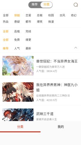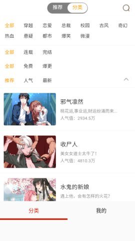 1、绵羊漫画平台的界面简洁清晰,提供了详细的题材分类,让用户轻松找到所需的漫画。
