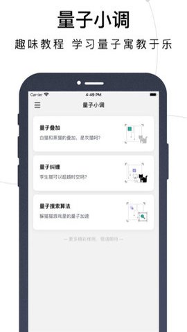 2、开发者可以应用“量子作曲家”这个模块,轻松编写量子程序并运行,亲身感受量子计算的魅力,真正把量子计算这个能力输出给学生、开发者和社会轻科技爱好者们,让量子计算编程基础的设施,随处可见,真正走进人们的生活,实现人人皆可量子的愿景!量易伏是一款功能齐全、操作简单、安全可靠的应用,它能够帮助学生更好地完成作业、规划课程、存储资料、进行计算等多种操作,提高学习效率和便捷性,同时还能让学生感受到量子计算的魅力,是一款非常优秀的作业辅助工具。