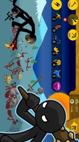 1、玩家需要带领自己的火柴人部队,闯过各种关卡,击败敌人,最终取得胜利。