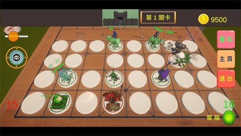 2、游戏中有各种操作按钮和关卡选择,玩家需要考虑棋子的顺序来吃掉敌人的棋子。