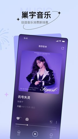 4、巢宇音乐还根据用户的听歌历史和喜好,精准推荐符合用户口味的音乐作品,让用户更加容易找到自己喜欢的歌曲。
