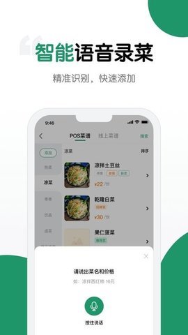 2、通过智能语音识别技术,商家可以快速录入菜品名称和价格,提高录入效率。