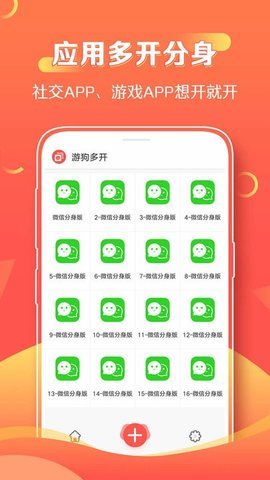 游狗多开免费版是一款功能强大的多开助手应用。它提供了多开服务,可以同时运行多个社交App、游戏App等分身,非常方便。无论你想要开几个账号,游狗多开都可以满足你的需求。
