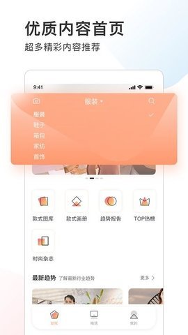 4、通过该应用,用户可以获取热门的时尚产业资讯,包括服装、箱包、鞋子、家纺和首饰等。
