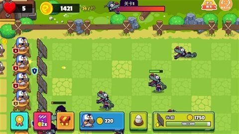2、游戏中有各种不同的防守阵线和塔防设施道具供玩家选择和使用,以抵御不断涌来的怪物鳄鱼的攻击。