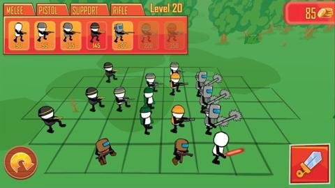 2、火柴人枪战模拟器是一款兼具塔防、养成、策略、动作冒险、军事、战争、卡通元素的游戏。