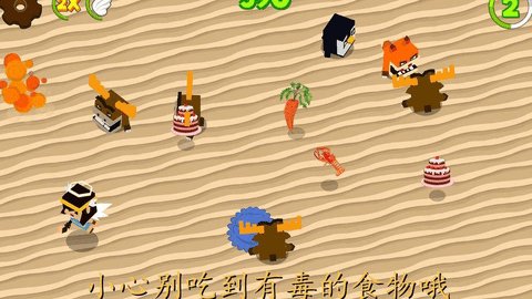 1、玩家需要通过收集美味食物来开启超级能力,同时还要辨别毒食物,避开敌人的追击。