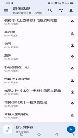1、歌词适配的弟弟app与原先的歌词适配应用相似,拥有相同的界面和音乐源。