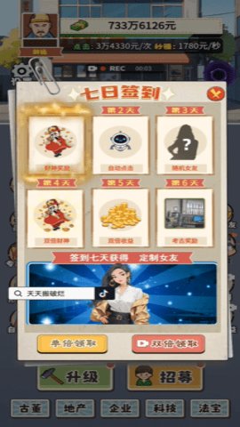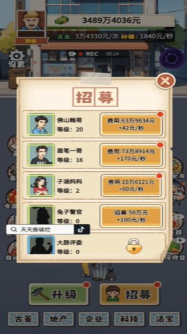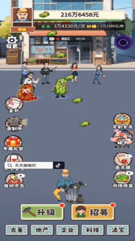 3、你还可以招募员工为自己工作,让每秒资金收入翻倍,享受从无到有的逆袭人生。