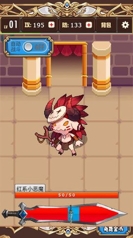 勇者变强靠公主是一款冒险闯关的横版冒险游戏。玩家需要进入下一层并击败红色小恶魔,以获得黄色钥匙,然后返回上一层。战斗时,玩家需要操作下方的指针,使其停留在蓝色区域,以获得更高的伤害。