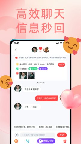 1、这个应用还提供了视频聊天功能,让你随时随地与有趣的中年单身女生或男生约会畅聊。