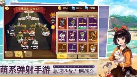 3、游戏采用了独特的横版弹道射击玩法,加入了猫狗大战玩法,主要以养成收集、1V1回合弹射为核心玩法。