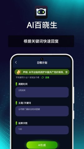 3、除了提供智能创作功能外,AI百晓生app还支持实时回答用户的,并根据用户的需求进行定制化服务。