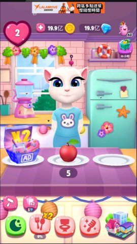我的安吉拉无限金币钻石是一款轻松休闲类游戏,玩家可以通过玩游戏获得大量的金币。这些金币可以用来购买药水,提高角色的等级。游戏中有一个按键可以带汤姆猫到餐厅,玩家可以给汤姆喂食物。