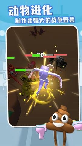 1、玩家需要将各种物品和动物进行融合,创造出新的物种,并加上各种武器,进行对战。