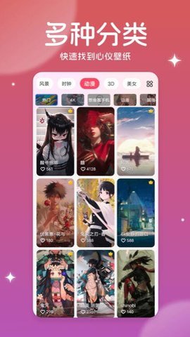 1、美多多壁纸拥有丰富多样的壁纸分类,包括风景、人物、动漫等各种主题。