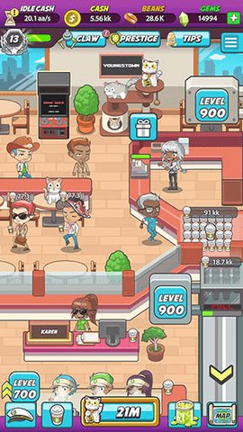 1、在懒散的咖啡师大亨官方版中,玩家还可以招募更多的服务员和经理,帮助管理店铺,从而有更多的研发新品咖啡,制作更加美味可口的咖啡。