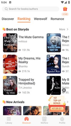 2、在storydo点击发现专区,用户可以查看各种类型的更新书籍,并在线点击阅读。
