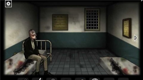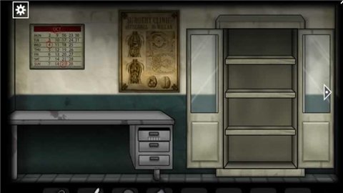3、在治疗室里,玩家可以看到墙上画着暗黑风格的解谜逃脱游戏,与锈色旅馆系列有些相似,但本作的画面没有那么精致,给人一种沉重的感觉。