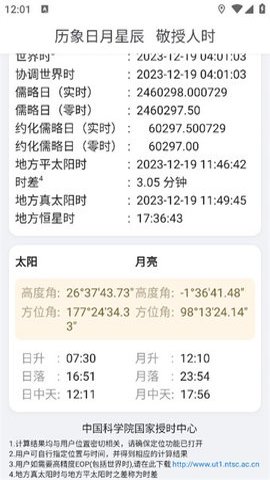 1、用户可以通过该应用来计算日月的实时位置、日月的升落、日月的中天时刻等。