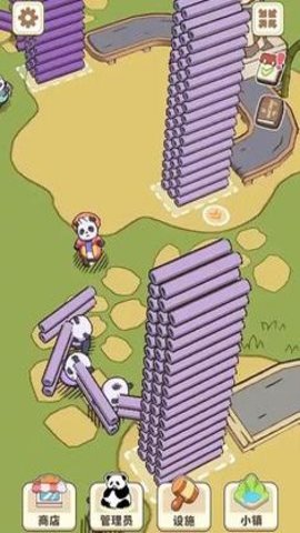 2、玩家将扮演熊猫家族的一员,通过召集家族成员,扩大团队规模,修建和升级生产线设施,对竹原料进行加工打磨和售卖等一系列操作,赚钱扩建自己的伐竹场地,最终收集足够的竹料修建属于熊猫家族的温馨小镇。