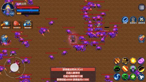 3、元素法师还是一款趣味割草手游,玩家可以通过割草获得经验值,升级自己的角色,使所有的攻击变得更加强大。