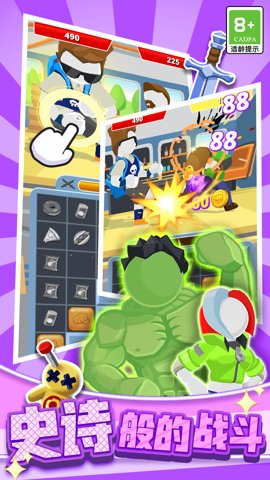1、同时游戏中还融合了三消元素,需要通过三消关卡解锁更多的豪华武器道具,增加格斗看点,让整个游戏更加有趣。