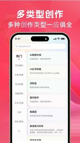 2、它还提供多种创作类型的文案资源,让用户可以灵活选择。