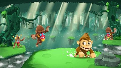 3、玩家需要躲避关卡中老猴子的机关和攻击,同时还要躲避其他的猴子对自己的攻击。