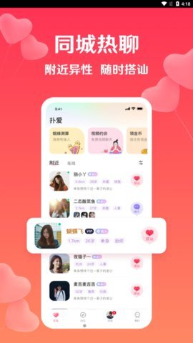 4、扑爱聊天app官方版是一款真实、高效的交友平台,专注于为单身用户提供安全、便捷的社交体验。