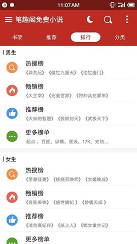 2、除了提供丰富的图书资源,笔趣书阁红色版还实时分享各种榜单内容,帮助用户找到更多优质的小说资源。