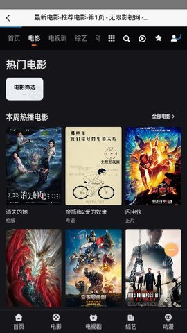 3、无限影视手机版还汇集了各大卫视和网络电视台的近期热门电影、电视剧、动漫和综艺节目。