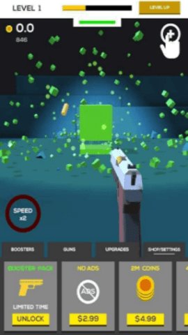 3、玩家需要通过打破目标砖块赚取金币,解锁更强大的武器,提升自己的实力和技巧。