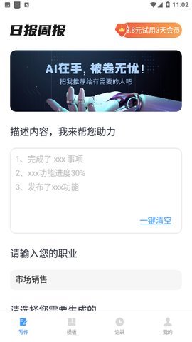 3、在画面设计方面,日报周报生成助手采用了清爽的风格,没有杂乱的广告干扰。