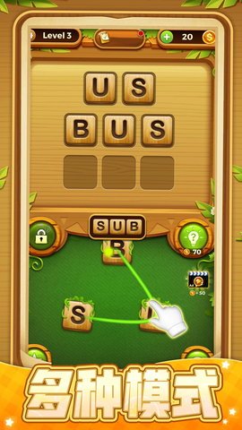 1、答题大师的操作非常简单,玩家只需轻松滑动选择字母组成各种单词,非常容易上手。