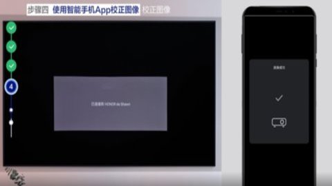 3、用户可以使用相机拍照,然后通过应用程序自动校正投影图像的形状,使其与幕布相匹配。