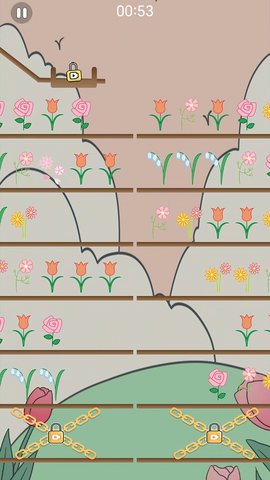 2、需要将四个相同的花朵连成一列才能进行消除,并且下方有铁链锁住的货柜,需要完成几次消除才会解锁,空间就会变多。