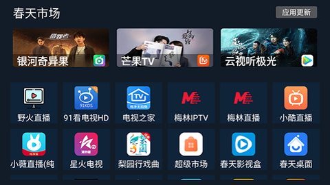 2、春天市场TV版App不仅支持电视直播和完整的视频播放,还支持电视和点播应用的集合。