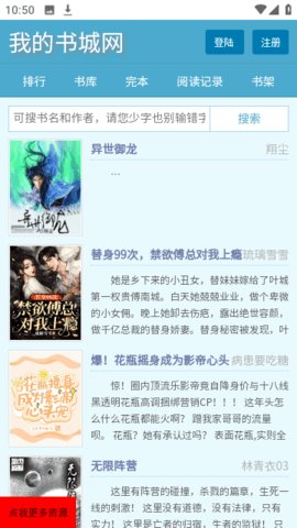 4、我的书城网拥有超百万本小说的资源,并且提供了全网搜索服务设置,方便用户快速查找到自己想要阅读的小说。