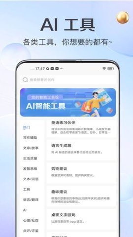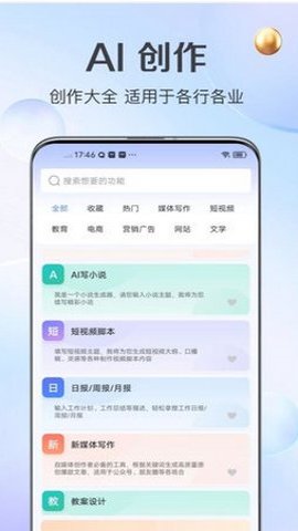 1、该软件还提供了AI写小说、智能创作脚本等多种创作模板和工具,助用户快速创作出引人入胜的文本内容。