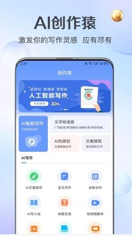 2、AI创作猿是一款功能强大、操作简单的AI写作软件。
