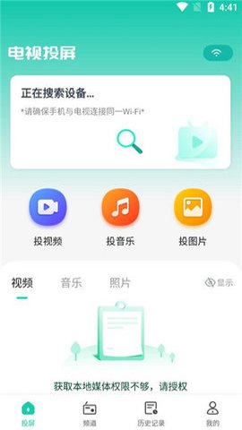 一键投屏电视是一款实用工具应用,可以满足用户在不同场景下的投屏需求。软件支持多种设备,如手机、平板电脑和电脑等,让用户可以随时随地享受大屏幕分享的畅快体验。 这款软件支持本地视频、照片、音乐的投屏,用户只需一键操作,就可以将手机上的内容投射到电视上。