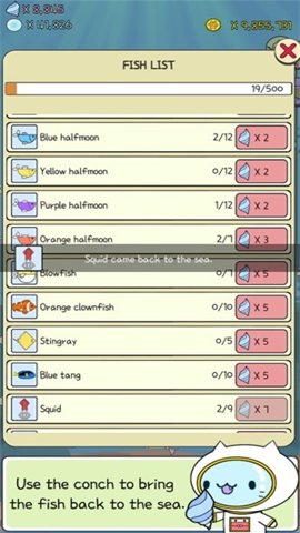 2、游戏的画风非常可爱,无论是玩家操控的小猫,还是海里的各种生物都十分可爱。