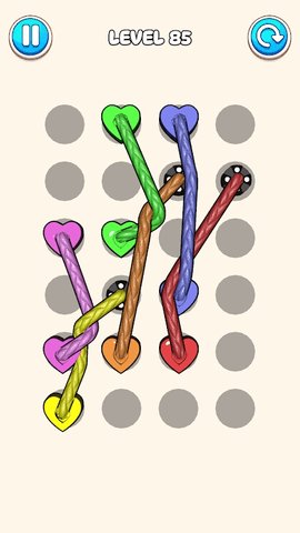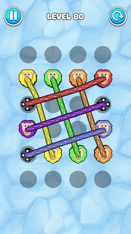 2、玩家可以用手指在屏幕上拖拽、拉动、旋转、松弛、收缩等方式来处理绳索,寻找最佳解决方案。