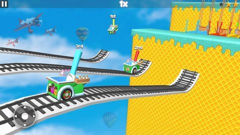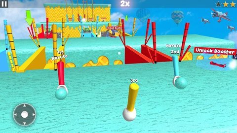 1、游戏中设有多个关卡,每个关卡都有独特的赛道,包含了各种道具和陷阱,需要玩家通过巧妙操作来克服困难。
