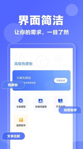 1、不论是自媒体人、写作爱好者还是企业营销人员,伪原创App都能满足他们对创意文案的需求。